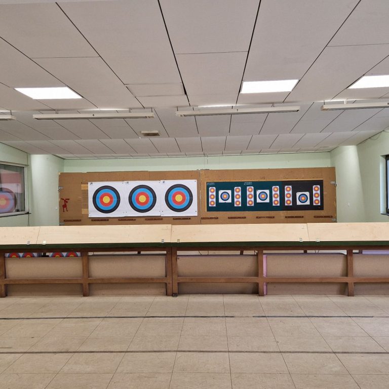 Nach einem einfachen Umbau, können wir die Multifunktionshalle flexibel und schnell umgestalten. Für euch stehen dann acht Bahnen zur Verfügung, auf denen ihr mit dem Bogen auf eine Distanz von 18 Metern schießen könnt. Zögert nicht, eure Freunde einzuladen und unser Angebot zu nutzen.